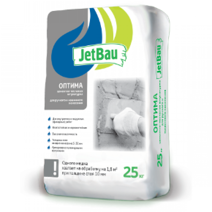 JetBau Оптима Цементная штукатурка 25кг (56шт/под) одного мешка1.8 /м2